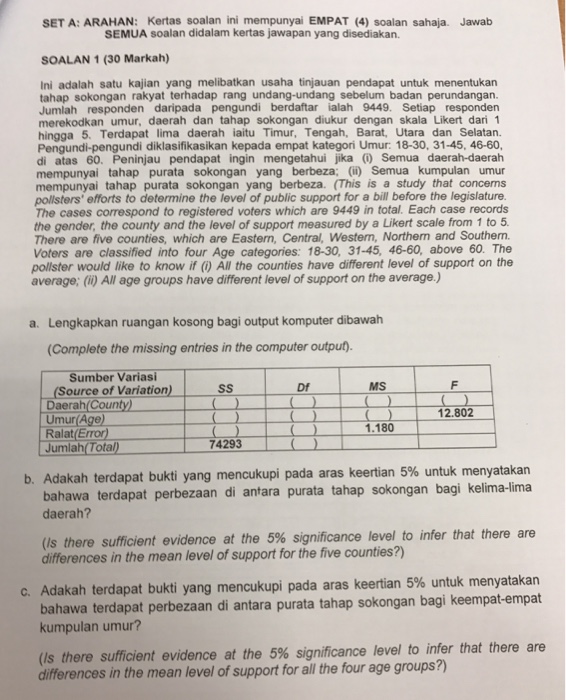 Solved Ini Adalah Satu Kajian Yang Melibatkan Usaha Tinjauan Chegg Com